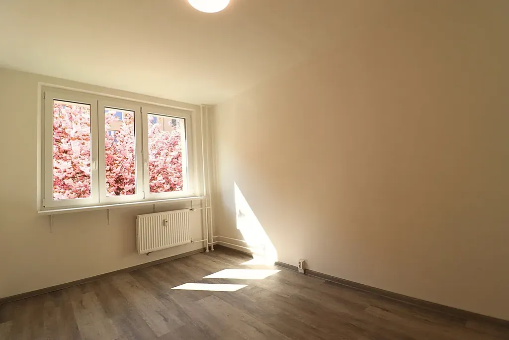 Velkou výhodou je dostatek úložného prostoru (vestavěné skříně) a balkón orientovaný do zeleně.