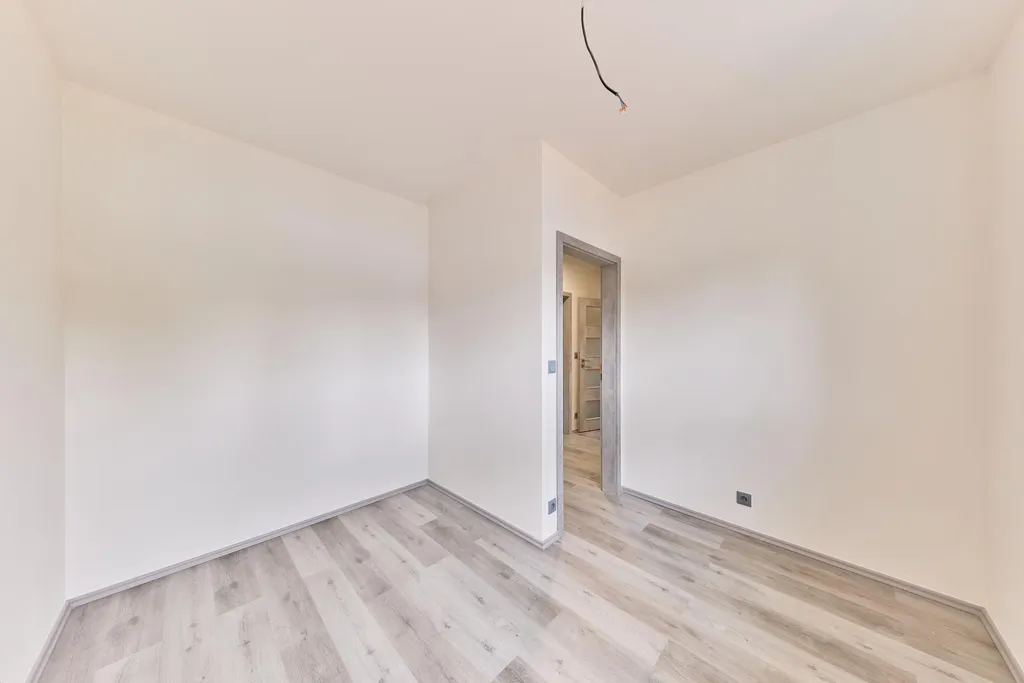 Interiér nabízí prostorné a praktické řešení 4+kk, doplněné o dostatek úložných prostor včetně půdního prostoru o velikosti cca 8 m² a skladovací kóje na chodbě domu.