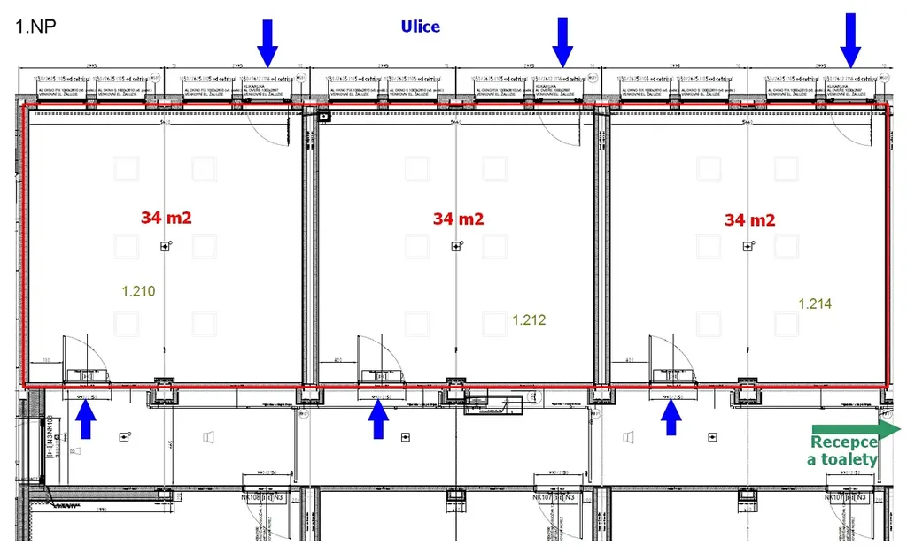 Nabízíme k pronájmu až 102 m2 – nebytových prostor v přízemí novostavby moderního polyfunkčního modulárního objektu (hotelová a administrativní budova) WE HOTEL PRAGUE, ul. Beranových, Praha 9 – Letňany, v těsné blízkosti křižovatky ul. Beranových a ul. Tupolevova. Jedná se o 3x samostatných kanceláří/místností (3 x 34 m2) s příslušenstvím, v 1.NP, s možností dalších variabilních úprav, kdy je možnost pronájmu i jednotlivě. Z důvodu umístění v přízemí nového hotelu WE HOTEL PRAGUE je možné tyto prostory využít jako obchodní prostory, kanceláře, využití pro poskytování služeb, nejen pro hotelové hosty (kadeřnictví, kosmetika apod.). Možnost umístění loga na fasádu budovy. Recepce non-stop. Přístup do prostor ze společných částí budovy a také přímo z ulice. Jedná se o plně nové prostory, doposud neužívané. Vlastní parkoviště. Velmi dobrá dopravní dostupnost do centra Prahy (u BUS zastávky Výstaviště Letňany a cca 350 m od stanice metra/BUS Letňany). Ihned k dispozici.