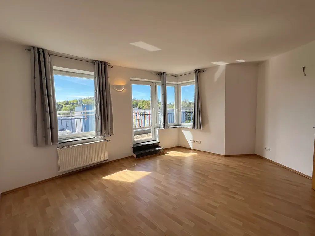 Srdcem bytu je velkorysý obývací pokoj s kuchyňským koutem (66 m²) a se dvěma vstupy na terasu. Kuchyňská linka je plně vybavena spotřebiči AEG, interiér doplňuje elegantní vstupní stěna s úložnými prostory na míru a šatna s vestavěným nábytkem.