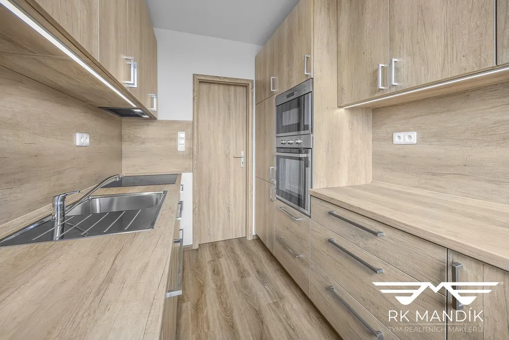 Nemovitost prošla kompletní rekonstrukcí a je připravena k nastěhování. Vstupní chodba disponuje vestavěnými skříněmi s úložným prostorem na míru – praktické zázemí ihned po vstupu do bytu. Byt je dispozičně řešen obývacím pokojem se vstupem na zasklenou lodžii, dvěma samostatnými ložnicemi a plně vybavenou kuchyní s novou kuchyňskou linkou. Ta zahrnuje varnou desku, digestoř s odvodem, myčku nádobí, mikrovlnnou troubu i elektrickou troubu. Koupelna je vybavena vanou a pračkou, WC je samostatné. V rámci rekonstrukce byla vyměněna podlaha, obložky dveří, provedena nová výmalba a kompletní elektroinstalace.