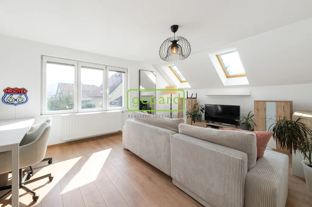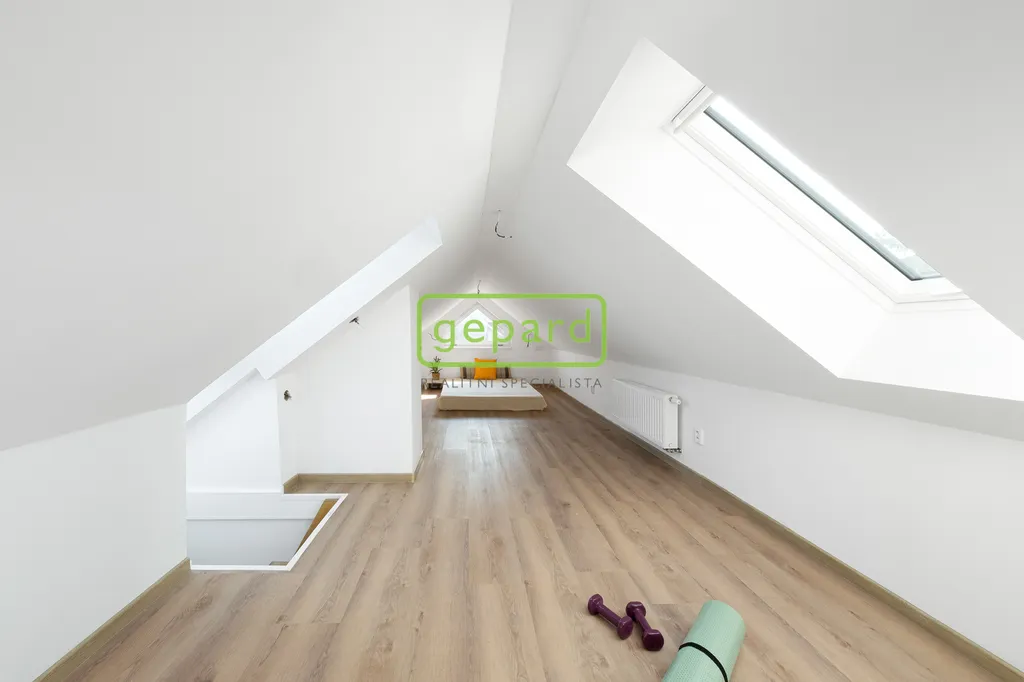 Už při vstupu vás překvapí příjemná vzdušnost a množství světla. Hlavní obytné podlaží působí otevřeně a přirozeně propojuje obývací prostor s kuchyní, odkud se vychází na balkon. Je to místo pro každodenní život a setkávání. Nechybí ložnice s vestavěnou skříní a koupelna s vanou. Horní patro nabízí další úroveň soukromí – samostatné pokoje, pracovnu i oddělenou koupelnu a toaletu. Velkým benefitem je terasa s otevřeným výhledem do okolní krajiny, která má své kouzlo v každém ročním období. Jeden z pokojů je navíc rozšířen o praktické spací patro, které přidává další využitelné metry – ať už pro spaní, relax nebo kreativní prostor.