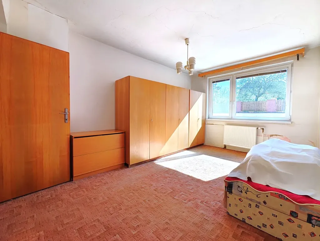 Rodinný dům o dvou nadzemních podlažích (+ sklep) z roku 1980 nabízí dostatek prostoru pro velkou rodinu nebo pro fungování dvou samostatných bytových jednotek. K hornímu bytu (4+1) náleží velká terasa nad garáží s orientací na jiho-západ, která nahrazuje posezení na zahradě a v létě zafunguje jako druhý obývací pokoj. Stejné zázemí poskytne dolnímu bytu (3+kk) dvorek, který se ještě zvětší po případném zbourání dřevěné stodoly.