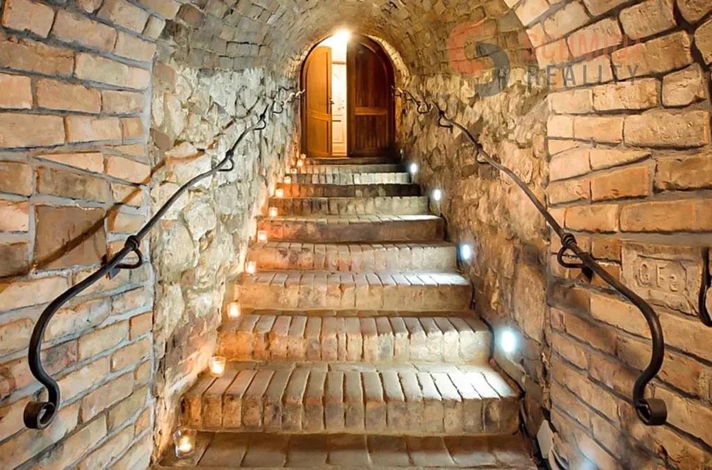Přízemí tvoří původní sklep s degustační místností a archivem vín.