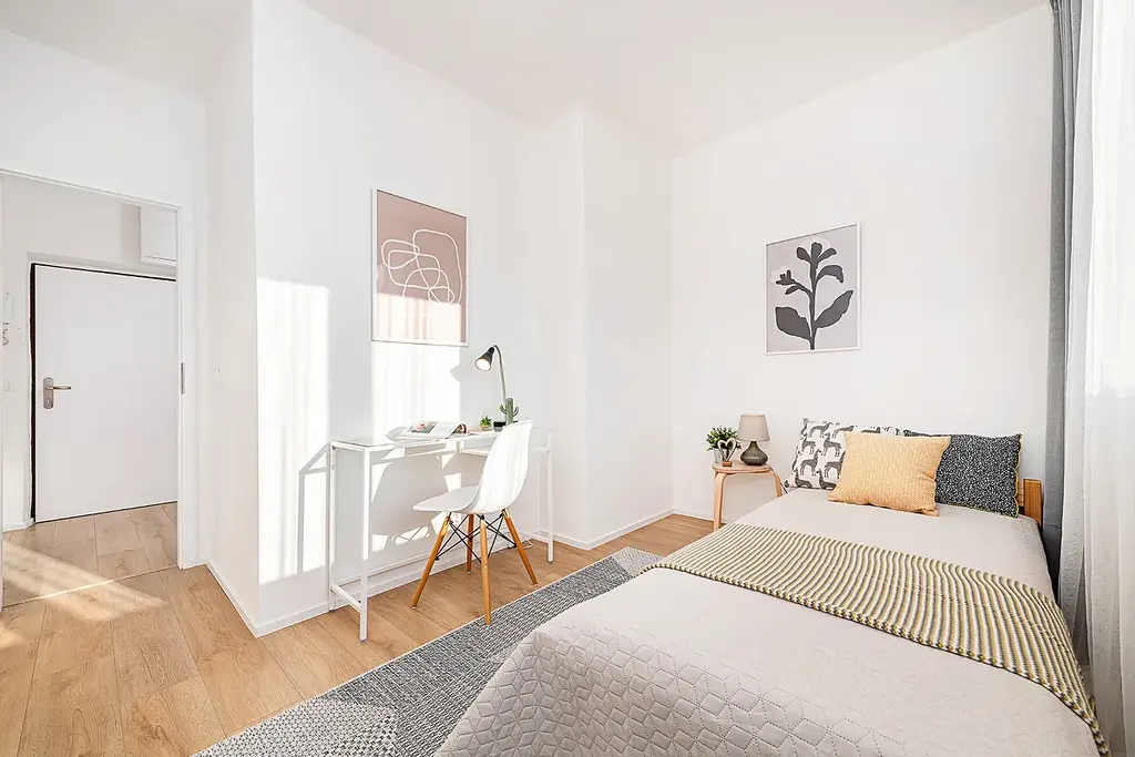 Dispozici bytu tvoří dvě neprůchozí ložnice, velkorysý obývací pokoj spojený s kuchyní, prostorná koupelna se sprchovým koutem, samostatný záchod a tecnická místnost.