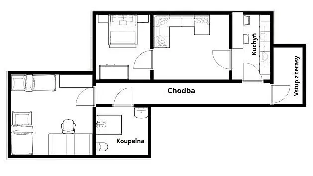 Pronájem světlého bytu 3+1 s terasou - Žďár nad Sázavou