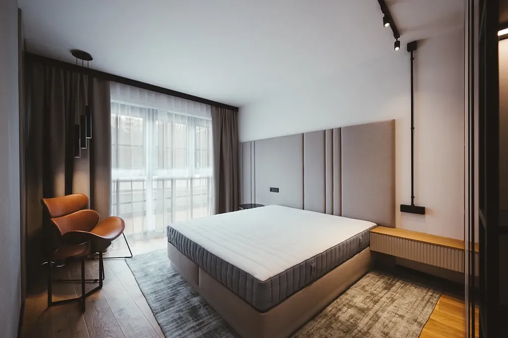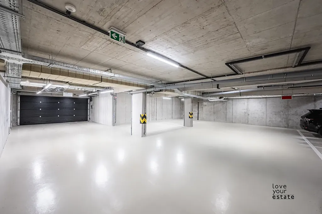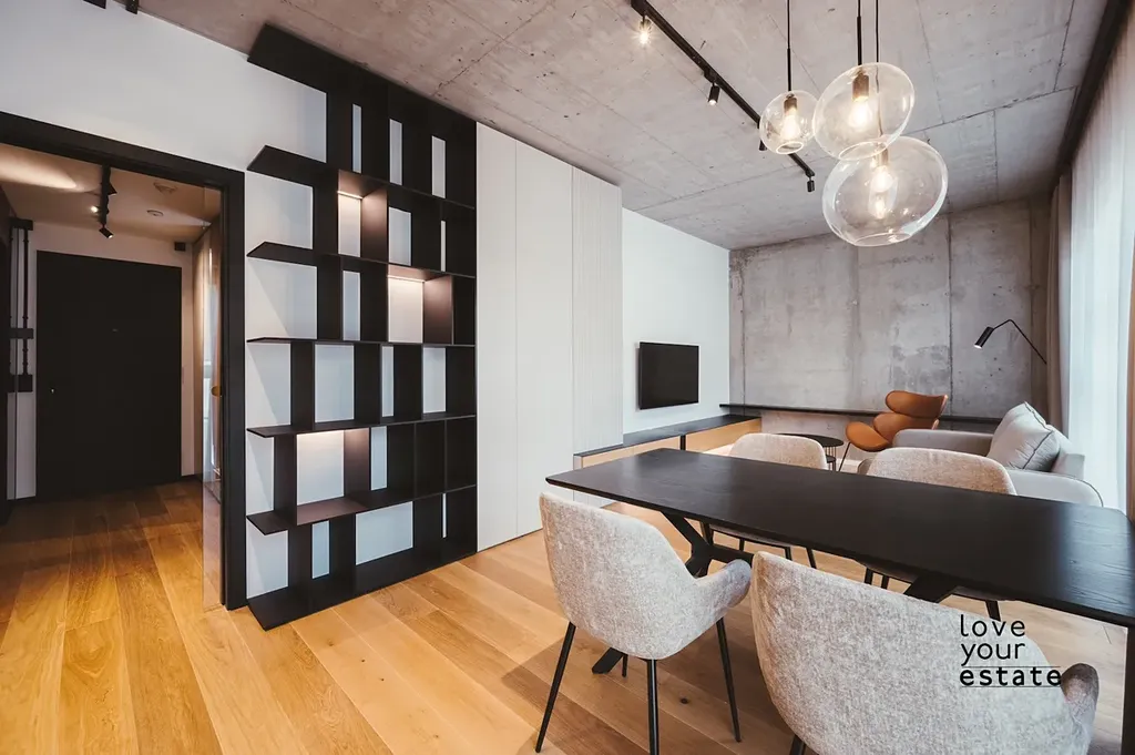 Kuchyňská linka je vyrobena na míru, doplněná pracovní deskou z přírodního kamene a spotřebiči značky Siemens. Byt je dále vybaven systémem chytré domácnosti Loxone, designovým italským nábytkem a textiliemi na míru. Celek působí čistě, promyšleně a nadčasově. Samozřejmostí je také optické internetové připojení s rychlostí až 2 Gb/s.