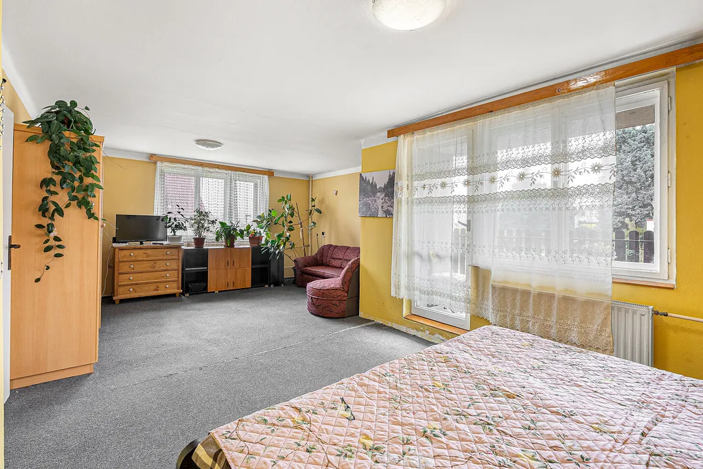 * 2. patro: tři samostatné pokoje, WC a místnost s potenciálem pro další koupelnu či kuchyň