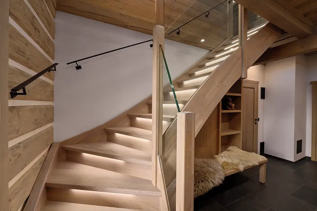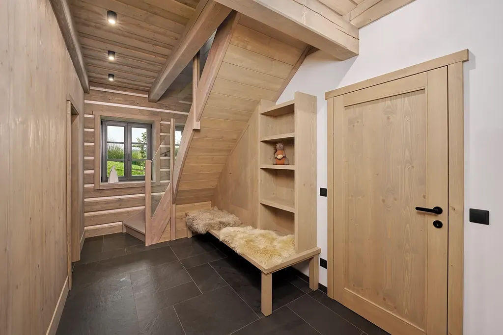 Tepelná čerpadla Daikin (voda–vzduch), trojitá dřevěná okna, dlažba a vinylové podlahy