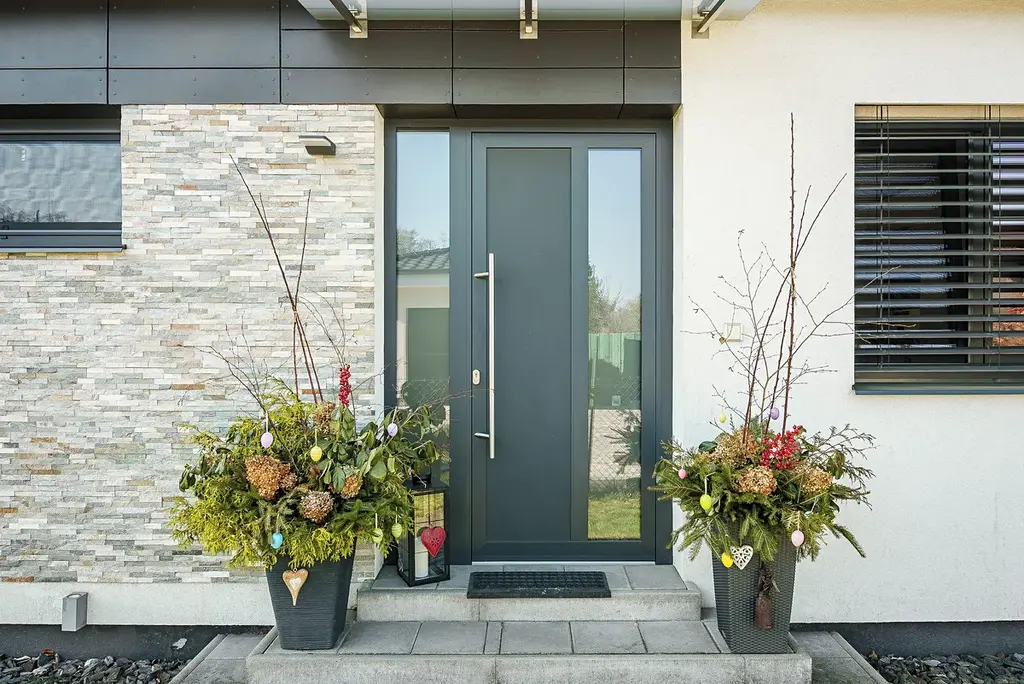 • Kvalita bez kompromisů: Dům je postaven z tvárnic Ytong se zateplením (20 cm) a fasádou z obkladových desek Cembrit a kamene. Hliníková okna s trojskly a elektrickými venkovními žaluziemi zaručují dokonalý tepelný komfort.