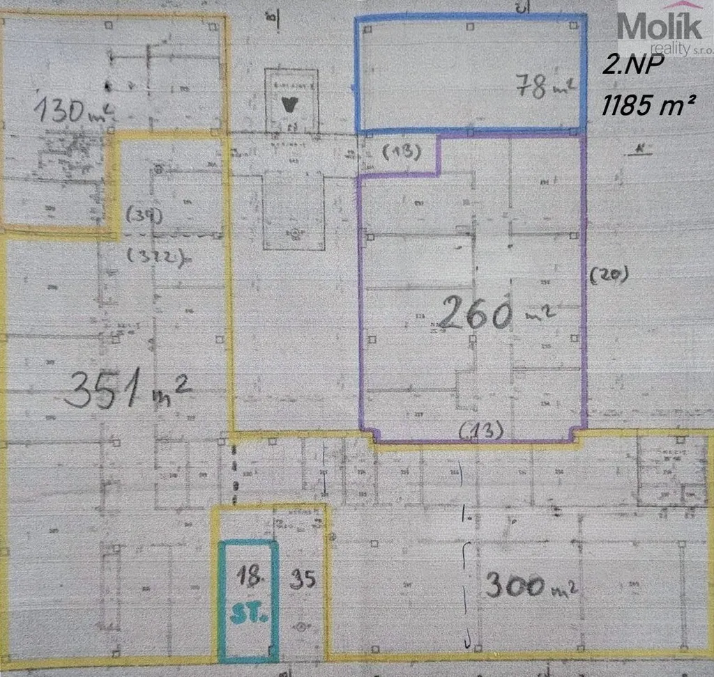 Dispozici najdete v přiloženém plánku, na patře je k dispozici dámské a pánské WC. K dopravě do patra je možné využít schodiště, nákladní výtah, dále třímetrové elektrické dveře z boční strany budovy.