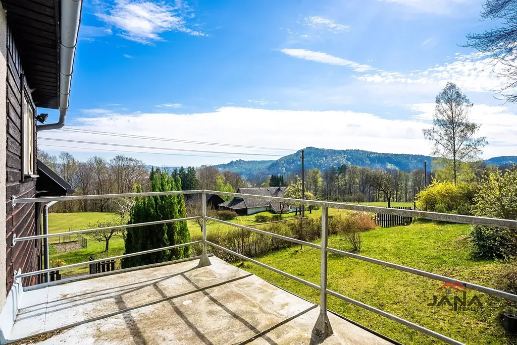 Z terasy v podkroví i ze zahrady jsou výhledy do okolní krajiny a na skalní útvary Českého ráje,