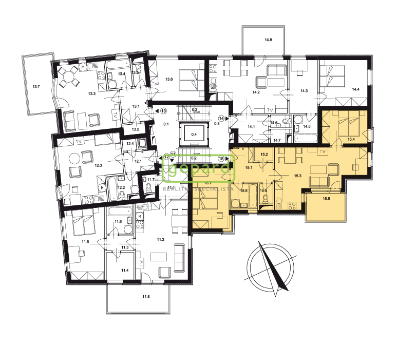 Byt se nachází v 3. NP domu a je orientován na jižní stranu. Dispozičně je byt řešen tak, že z hlavního vstupu vcházíte do předsíně, ze které je samostatný vstup do jedné z ložnic, obývacího pokoje s kuch. koutem a také do komory, koupelny a na WC. Druhá ložnice je přístupná přímo z obývacího pokoje. Z obývacího pokoje s kuchyňským koutem je vstup na balkon. Koupelna je s vanou, WC je samostatné. Byt má zděné příčky, vinylovou podlahu s dubovým dekorem, dřevěná eurookna s dvojskly. Výhodou je optická síť až do domu pro internet, telefon a kabelovou televizi.