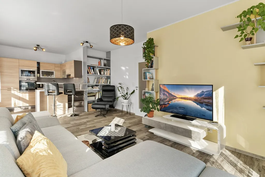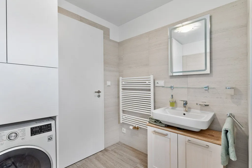 Nabízíme k pronájmu kompletně vybavený, moderní byt o dispozici 2+kk a podlahové ploše 59 m², situovaný v 7. patře novostavby v ulici U Nisy. Součástí bytu je balkon o velikosti 4,3 m².