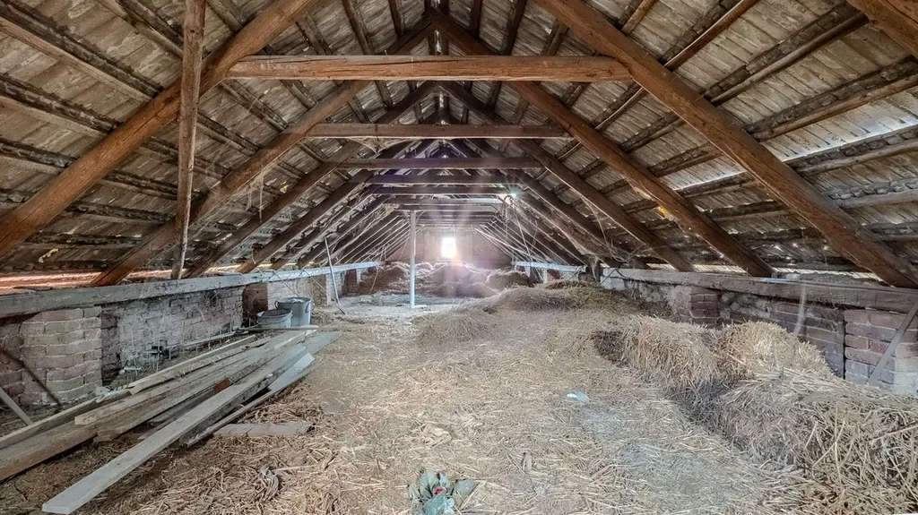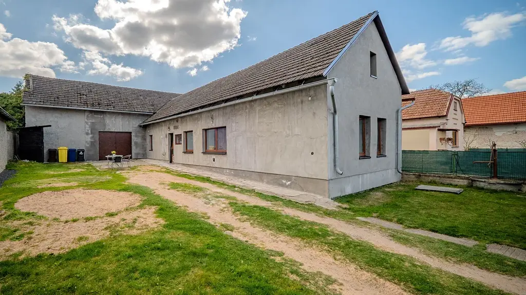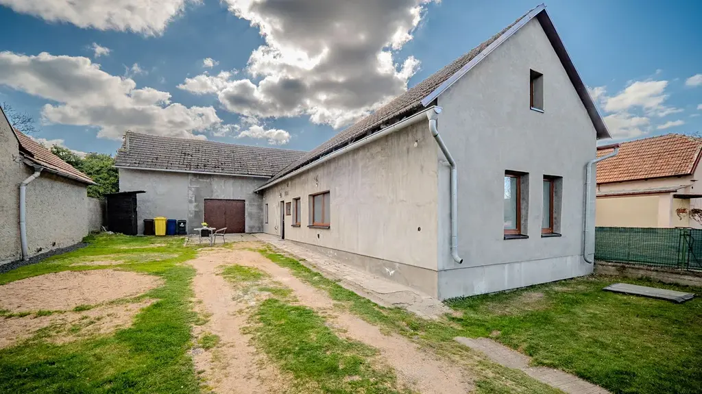 Součástí nemovitosti je uzavřený dvůr s možností parkování, stodola využitelná jako dílna nebo sklad a prostorná půda, která nabízí zajímavý potenciál pro další rozšíření bydlení.