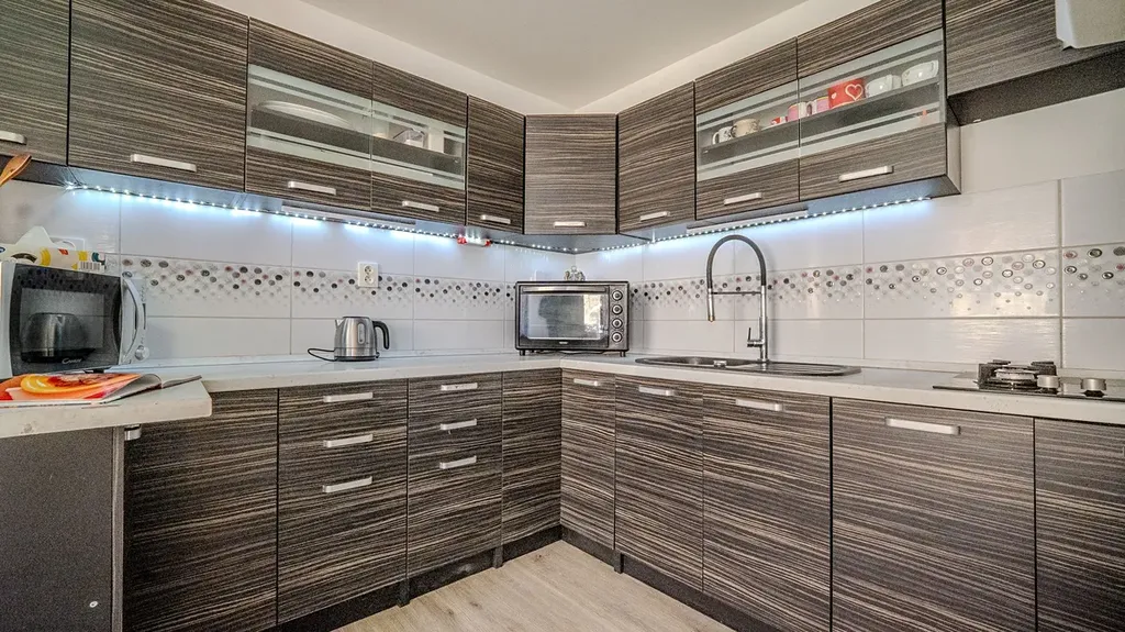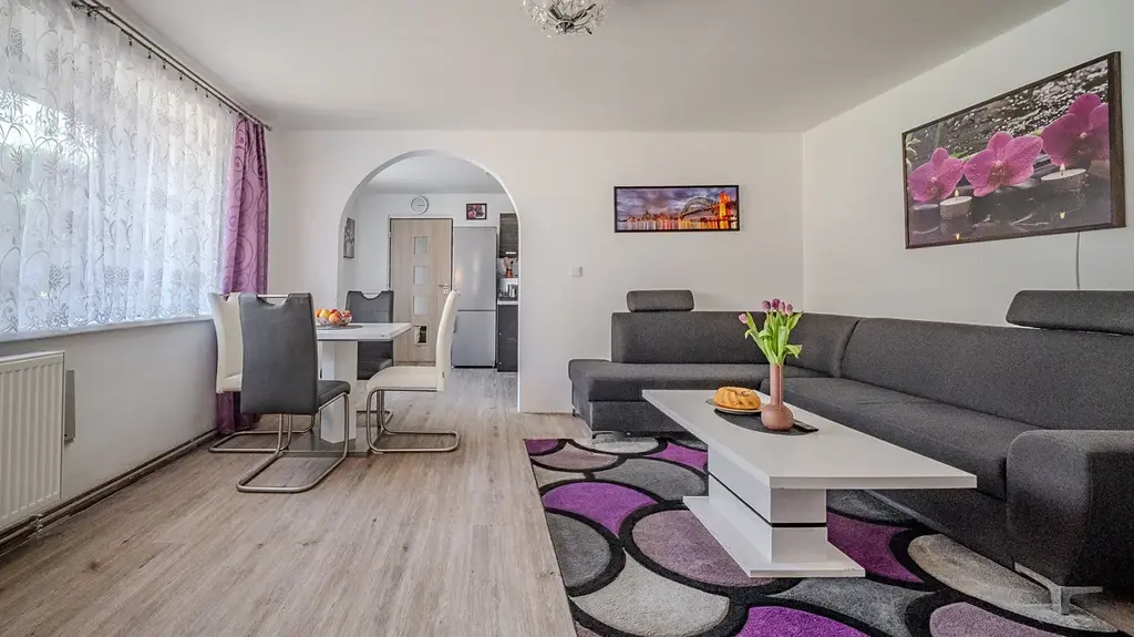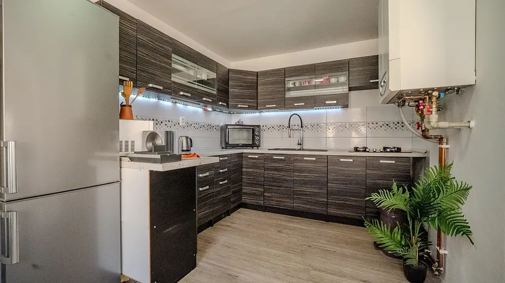 O vytápění a ohřev vody se stará moderní plynový kondenzační kotel, který zajišťuje příjemné bydlení s nízkými provozními náklady.