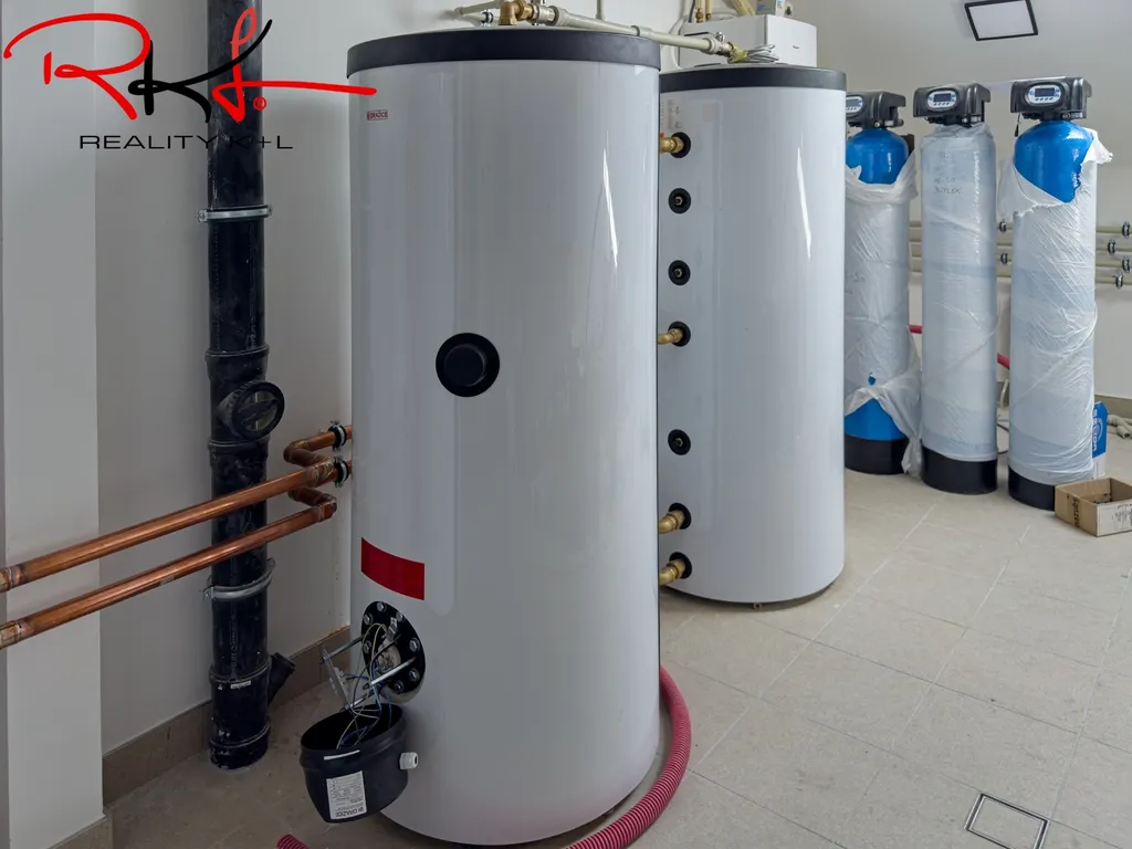 Vytápění je řešeno ústředně, centrálním tepelným čerpadlem. Ohřev teplé vody je rovněž zajištěn centrálně tepelným čerpadlem. Nemovitost je napojena na obecní vodovod a kanalizaci. Byt není bezbariérový.