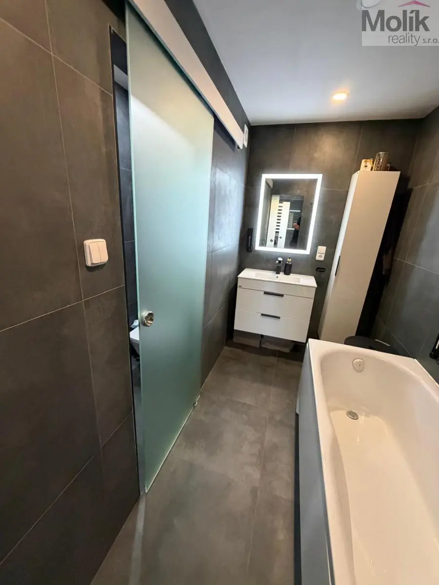 Byt prošel kompletní rekonstrukcí. V rámci úprav byly realizovány kompletně nové rozvody elektřiny, vody i odpadů, nové štuky, podlahové krytiny, interiérové dveře a moderní koupelna i kuchyně. Celý prostor působí velmi příjemně, světle a útulně.