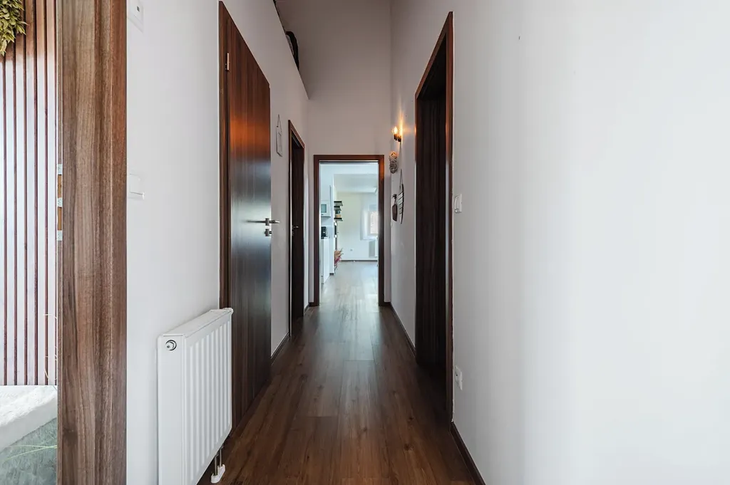 Jedním z nejsilnějších benefitů této nemovitosti je její umístění. Dům stojí na konci zástavby, což znamená minimum sousedů, maximální klid a otevřené výhledy do okolní krajiny bez další plánované výstavby. Součástí nemovitosti je také pohodlné parkování přímo na pozemku pro dva vozy. Samozřejmostí je napojení na obecní vodovod i kanalizaci.