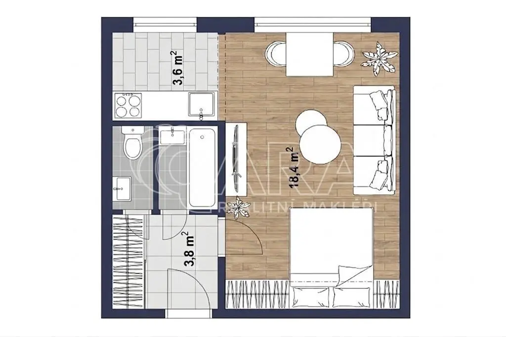 Jádro: Původní umakartové, vkusně obložené.
