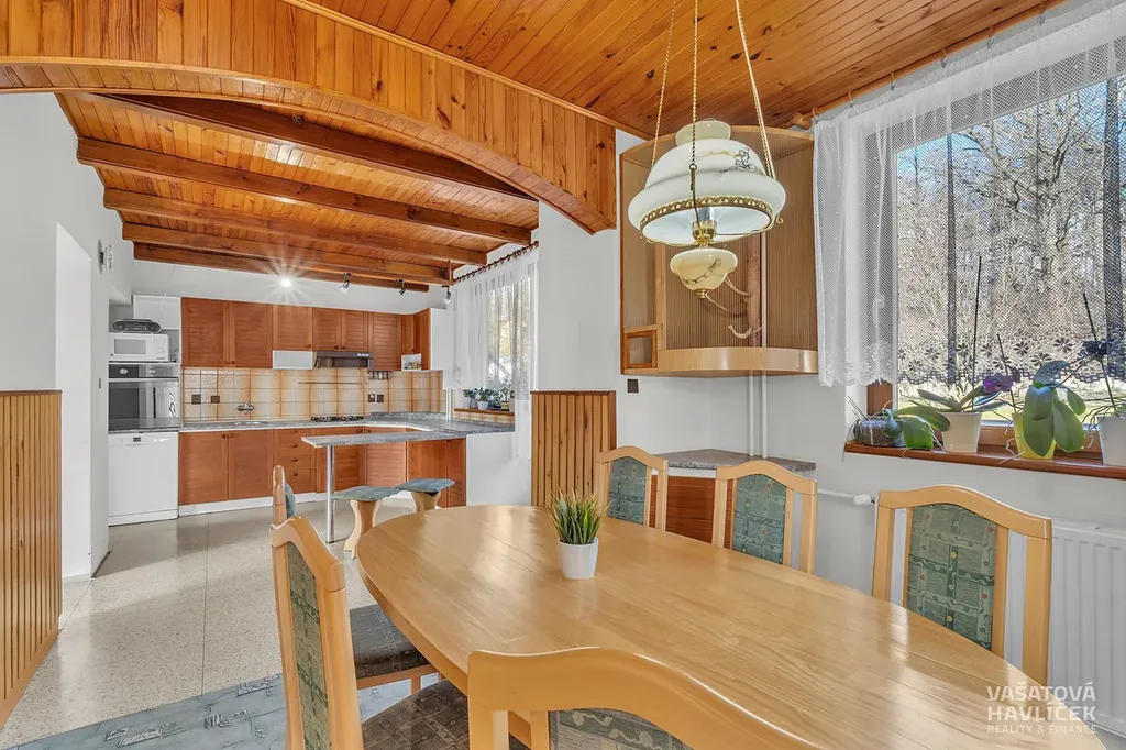 V atraktivní lokalitě Vysoká nad Labem Vám nabízíme k prodeji rodinný dům se dvěma bytovými jednotkami 3+kk a 5+1. Nachází se v původní zástavbě rodinných domů, ve slepé klidné ulici, s lesem za zády. Díky MHD se dostanete do Hradce Králové za cca 15 minut, řidiči ocení blízkost rychlostní silnice i dálnic D35 a D11.