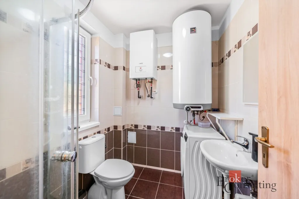 V přízemí se dále nachází samostatný pokoj vhodný například jako pracovna, pokoj pro hosty nebo ložnice, koupelna se sprchovým koutem, vstupní část a chodba.