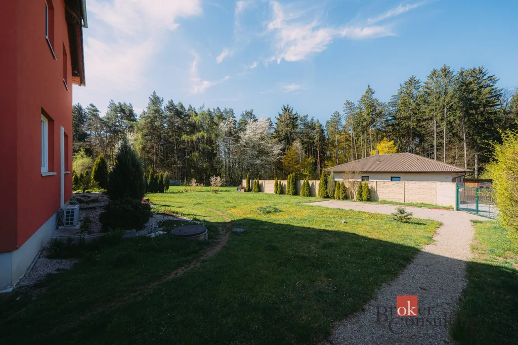 Součástí nemovitosti je udržovaná zahrada navazující na okolní zeleň a lesní porost, díky čemuž celé místo působí velmi klidným a soukromým dojmem.