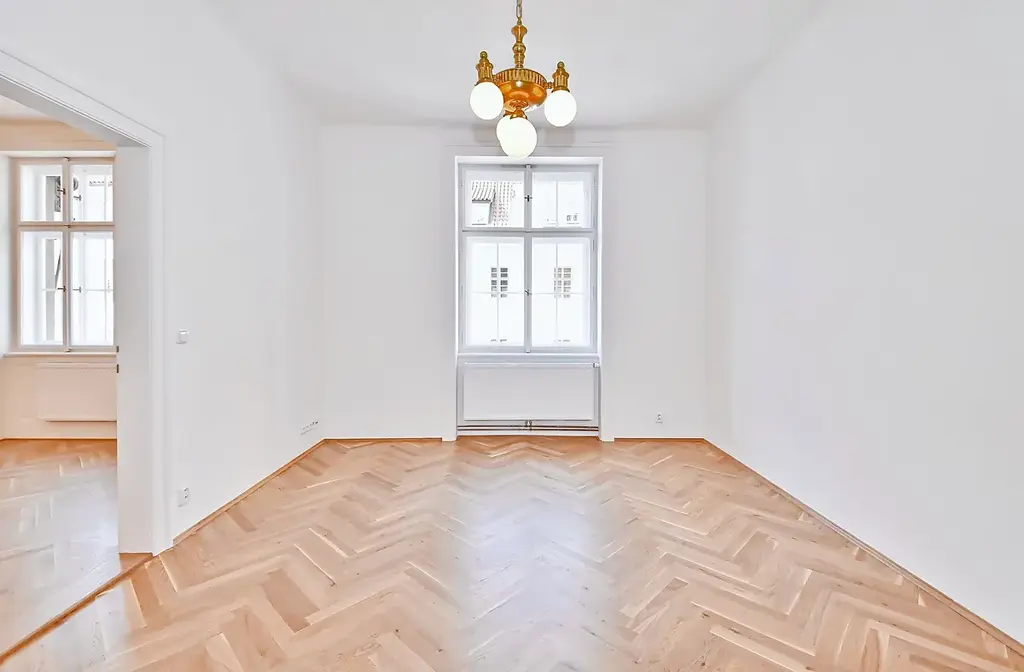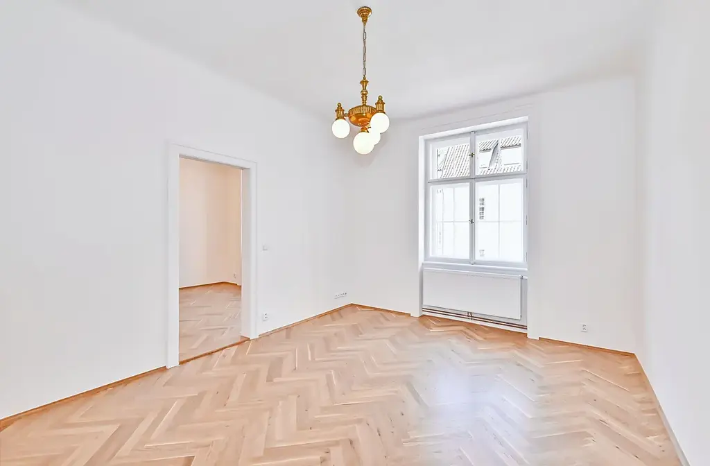 Nově zrekonstruovaný prostorný byt 3+1 (2 ložnice, 1 koupelna) o celkové ploše 95 m² se nachází ve 2. patře rezidenční budovy v prestižní lokalitě Praha 1 – Malá Strana, ulice Karmelitská.