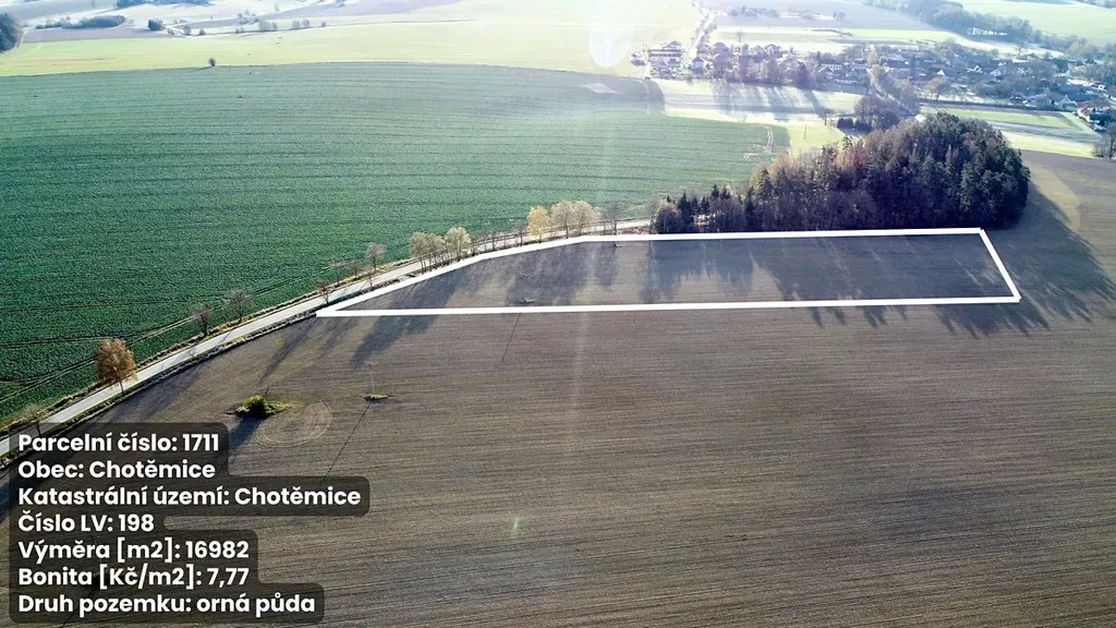 Nabízíme k prodeji vysoce kvalitní zemědělský pozemek v katastrálním území Chotěmice (okres Tábor). Tato parcela představuje ideální investici díky kombinaci výborné kvality půdy, perfektní dopravní dostupnosti a blížícího se termínu pro možnou úpravu pachtovních podmínek.