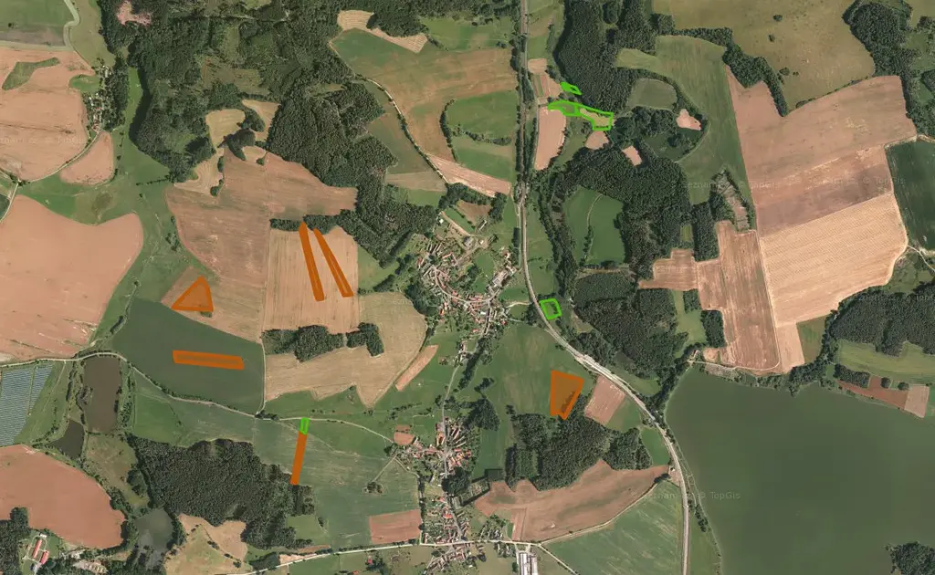 Nabízíme k prodeji zemědělské pozemky o celkové výměře 60.542m2 (6,05 ha). Pozemky se nachází v katastrálním území Milčice na listu vlastnictví č. 415 a katastrálním území Kovčín na listu vlastnictví č. 175. Pozemky jsou propachtované místní firmě do konce zemědělského roku 2028. za pachtovné ve výši 2.000,-Kč/ha/rok. Pozemky jsou využívané jako orná půda a část pozemků je využívána jako trvalý travní porost.