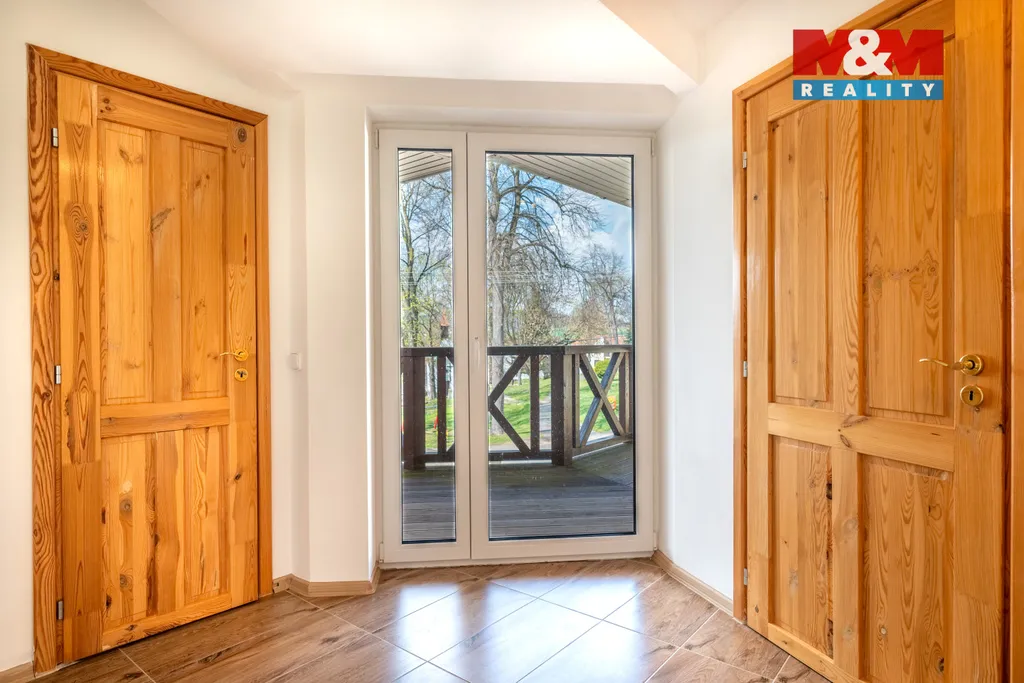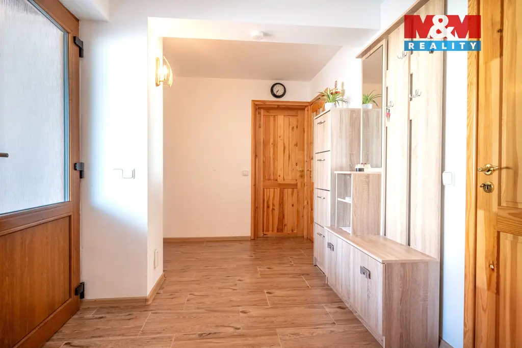 Nabízíme k prodeji výjimečný rodinný dům v klidné obci Třešovice, pouhých 8 km od Strakonic. Samostatně stojící zděná novostavba z roku 2015 o dispozici 5+1 s půdou (s možností rozdělení na dvě bytové jednotky) nabízí velkorysou užitnou plochu 238 m² na pozemku o velikosti 820 m². Dům je postaven z kvalitních materiálů HELUZ, obvodové zdivo o síle 50 cm s tepelnou výplní zajišťuje vysoký standard energetické úspornosti (PENB C). Samozřejmostí jsou trojskla s přípravou na venkovní žaluzie, podlahové vytápění a krbová kamna s rozvody tepla. K dispozici je garáž, zastřešené parkovací stání a pečlivě udržovaná zahrada s ovocnými stromy. Nemovitost disponuje vlastní čističkou odpadních vod i napojením na obecní kanalizaci, obecním vodovodem a vlastní studnou na zavlažování. Komfort doplňuje centrální vysavač. Exkluzivní nabídka pro náročné klienty hledající soukromí, prostor a moderní technologie.