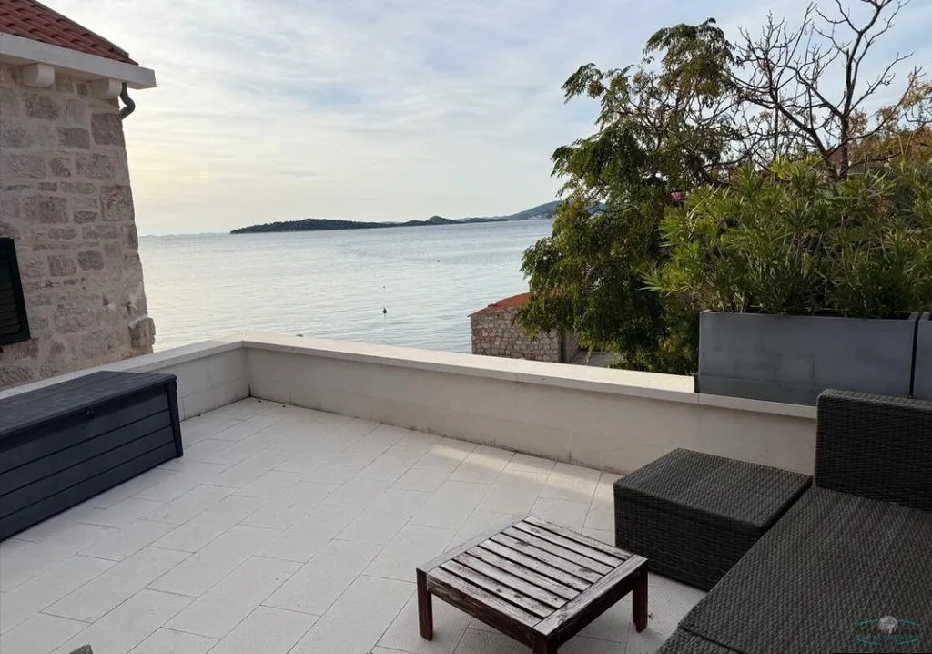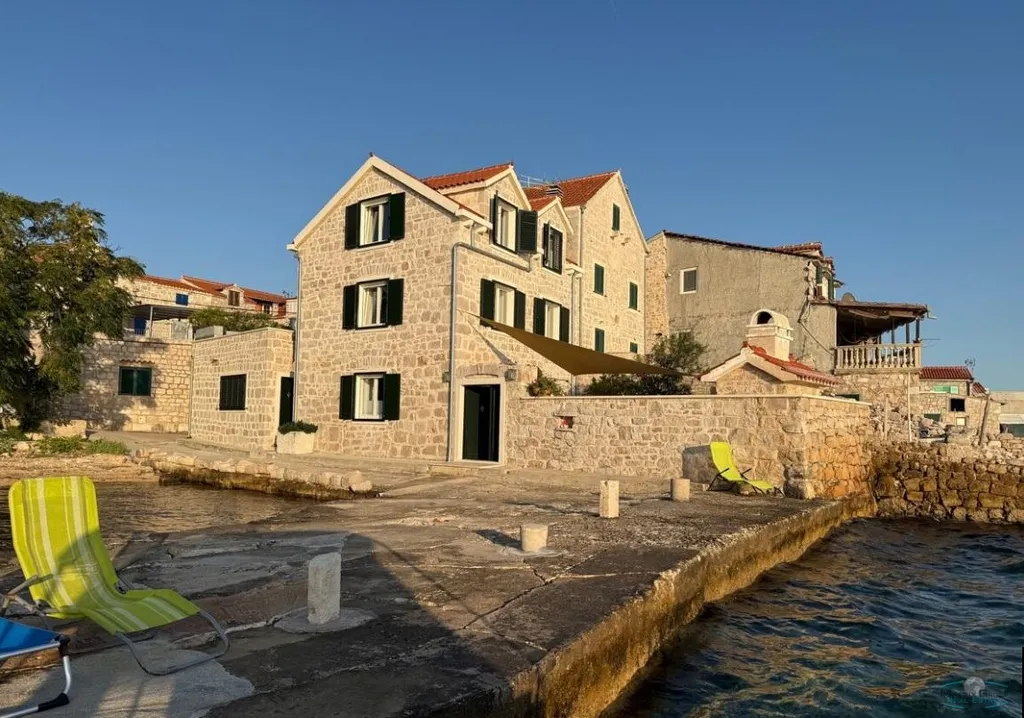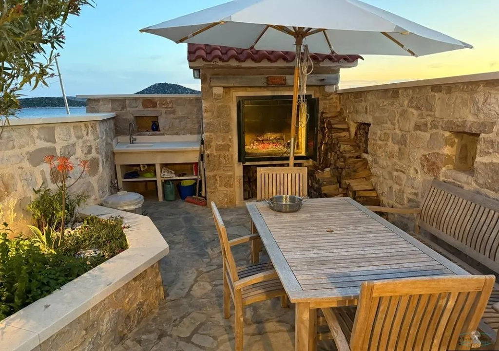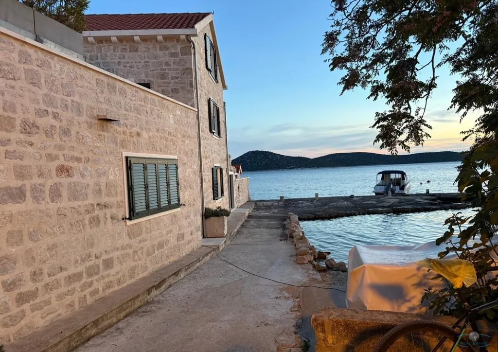 Nabízíme k prodeji nově zrekonstruovaný kamenný dům v Chorvatsku, na jižní straně ostrova Prvič, v městečku Šepurine, v první linii u moře, spolu s olivovníkovou zahradou 1200m2 a kamenou chatou a grilem, vzdálenou 500m od domu na vrcholu kopce s překrásnými výhledy na obě strany ostrova, včetně elektrického auta TORO WORKMAN. V přízemí kuchyně s krbem a wc, prosklená otevíraci stěna do dvora s grilem, 2.NP ložnice s koupelnou, 3.NP velká ložnice s koupelnou. 1.NP studiový apartmán s kuchyní a koupelnou s vlastním vchodem, veliká terasa s výhledem na moře. Mooring pro loď u domu.