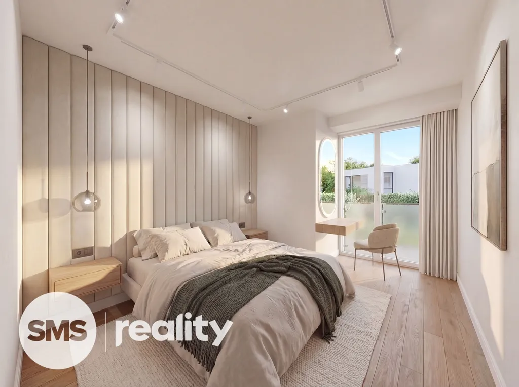 Patro (2. NP): Klidová zóna. Dva samostatné dětské pokoje a hlavní ložnice se soukromou průchozí šatnou a místem navrženým pro kosmetický stolek u okna. Na patře se nachází velkorysá koupelna vybavená vanou i sprchovým koutem (Walk-in).