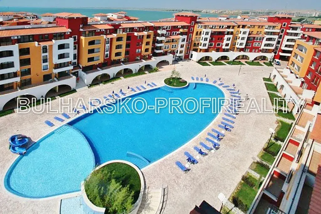 Apartmán je součástí velice udržovaného rekreačního komplexu hotelového stylu, který se nachází v lukrativní poloze PŘÍMO U MOŘE v klidné obci Aheloy.