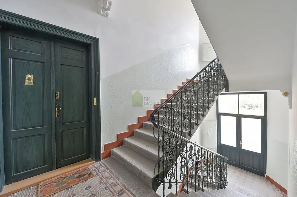 Byt se nachází v prvním patře cihlového domu a nabízí příjemné bydlení v zeleném prostředí. Kvalitní dřevěná podlaha v kombinaci s elegantní dlažbou Los Kachlos dodává interiéru nadčasový vzhled. Moderní kuchyňská linka značky Poggenpohl je vybavena veškerými spotřebiči pro pohodlné vaření.