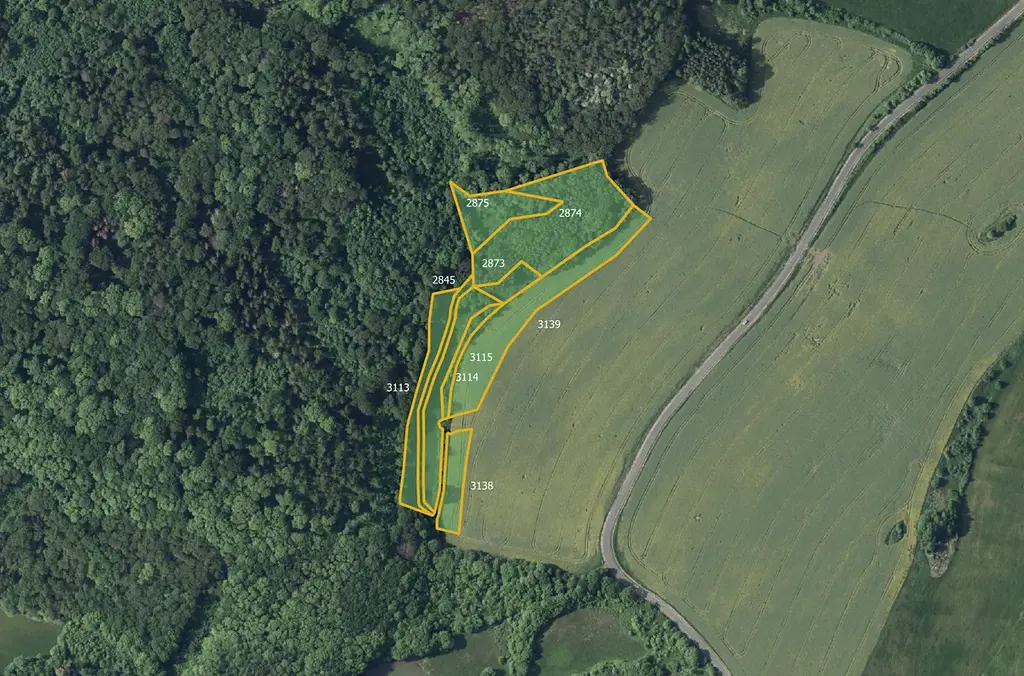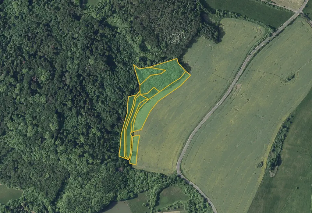 Součástí souboru je orná půda o výměře 6 719 m², která sousedí s lesním pozemkem (parcela č. 2874). Takové uspořádání zajišťuje přirozené oddělení pozemků a možnost efektivního využití.