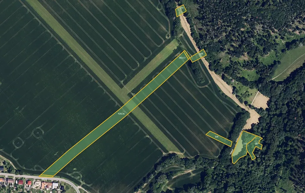 -> parc. č. 122/1, 122/2, 173, 225, 238/7, 238/13, 287, 308, 316, 358, 369, 383/17, 386/2, 428/26, 428/60, 661/18 a 661/19 (LV 47)