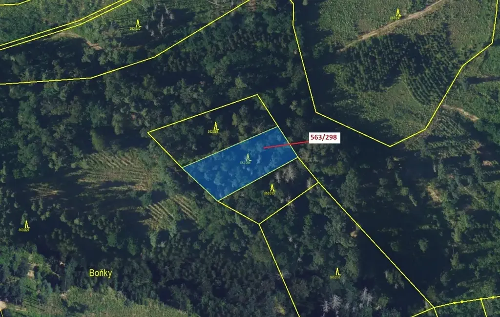 Lesní pozemek o výměře 1372 m2, parcelní číslo 563/298, podíl 1/1, katastrální území Spešov, obec Spešov, obec s rozšířenou působností Blansko, okres Blansko, Jihomoravský kraj.