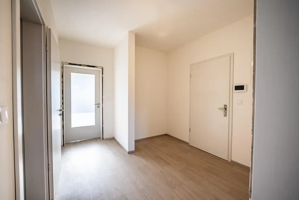 Nabízíme ke koupi zkolaudovaný byt 3+kk s velkou terasou, situovaný ve druhém patře novostavby cihlového bytového domu se třemi bytovými jednotkami, který je součástí projektu Rezidence Česká, v obci Česká u Brna.