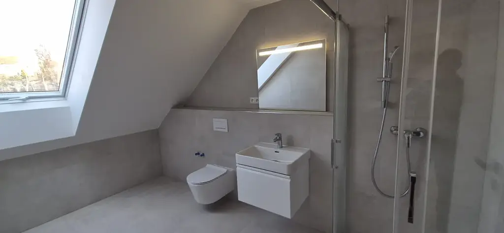 • Materiály: Dům je postaven v nadstandardu – dřevěné dubové podlahy, velkoformátová dlažba, bezfalcové magnetické dveře a okna s izolačními trojskly.