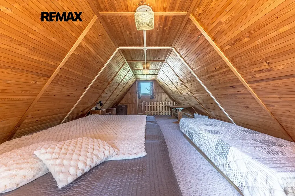 Objekt je patrový a nabízí užitnou plochu cca 36 m². V přízemí se nachází obytná místnost, samostatná kuchyňka se vstupem do koupelny se sprchou a WC. V podkroví je prostorná místnost na spaní až pro 4 osoby, ze které je vstup na balkon s krásným výhledem do okolní krajiny. Na pozemku je k dispozici pergola pro venkovní posezení a grilování. V zadní části zahrady se nachází zastřešená kůlna, vhodná pro uskladnění zahradního nářadí, kol nebo kutilské zázemí.