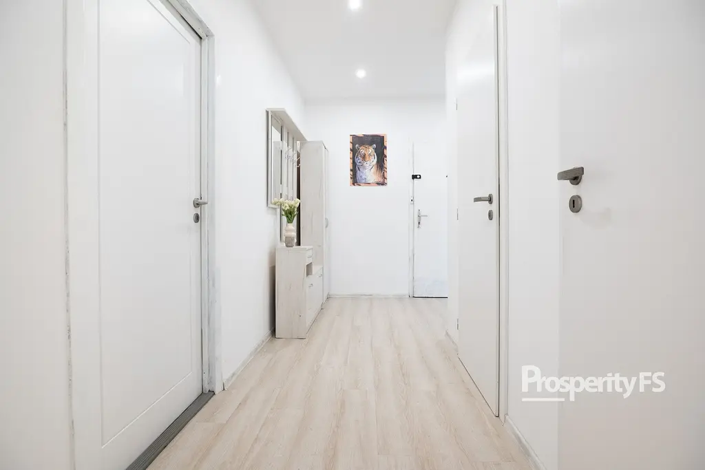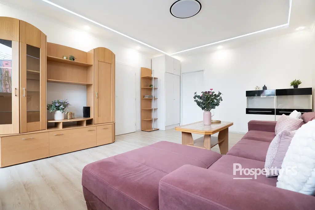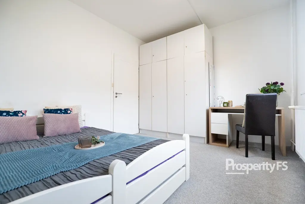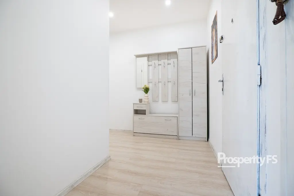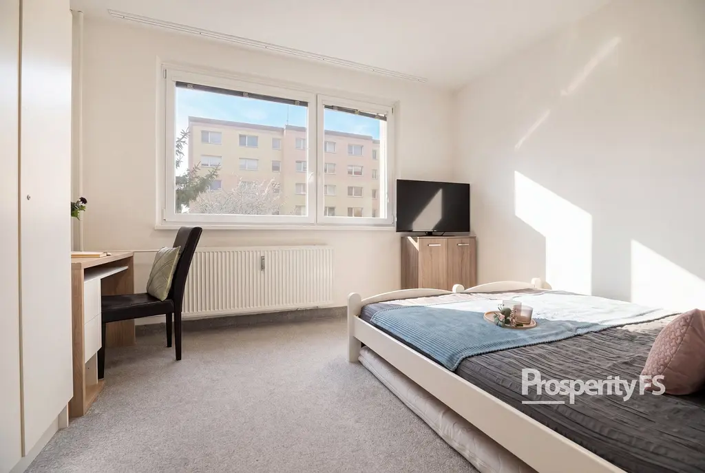 Nachází se ve 3. nadzemním podlaží zatepleného domu s výtahem. Byt je v udržovaném stavu – kuchyňská linka, koupelna s vanou, plovoucí podlahy, v ložnici koberec. Jádro a elektřina jsou původní. Vytápění i ohřev vody jsou řešeny dálkově. Energetická náročnost budovy je třídy B. Byt zůstane částečně vybavený.