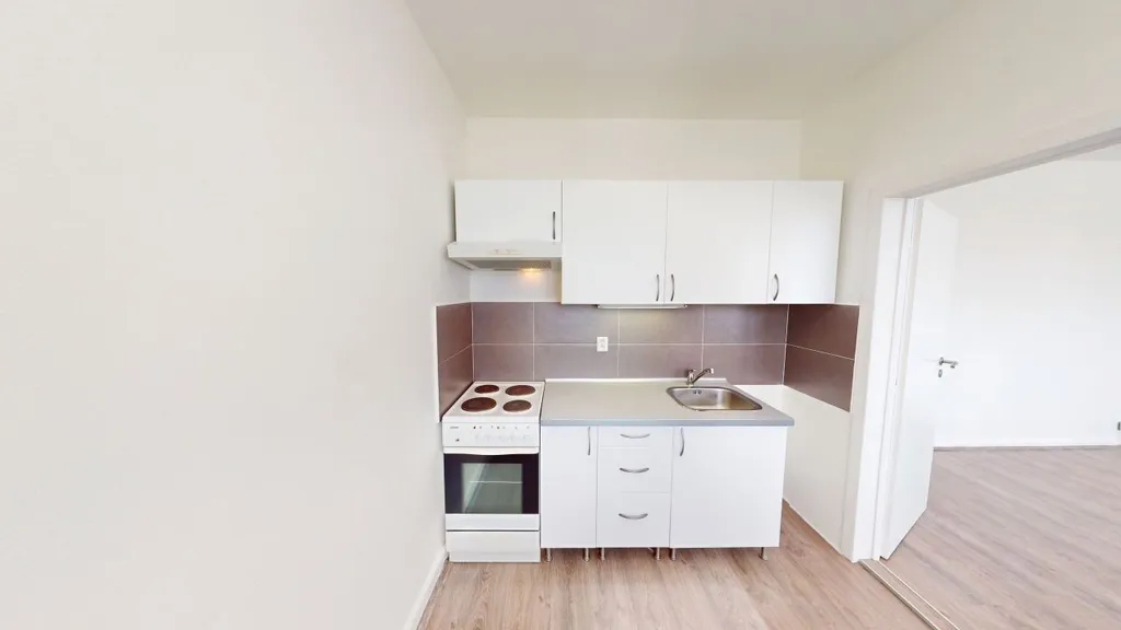 Byt prošel celkovou rekonstrukcí v roce 2013 a nachází se v 8.podlaží z 8.podlažního panelového zatepleného domu. Má původní jádro po renovaci, plovoucí podlahy, rozvody, omítky, interiérové dveře.