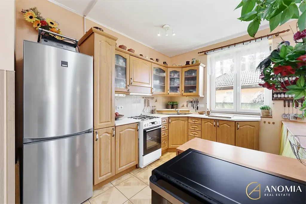 Hlavní obytný prostor má 36,15 m², a díky své velikosti nabízí dostatek místa pro kuchyni, jídelní stůl i pohodlnou obývací část. Vytápění domu zajišťuje plynový kotel.