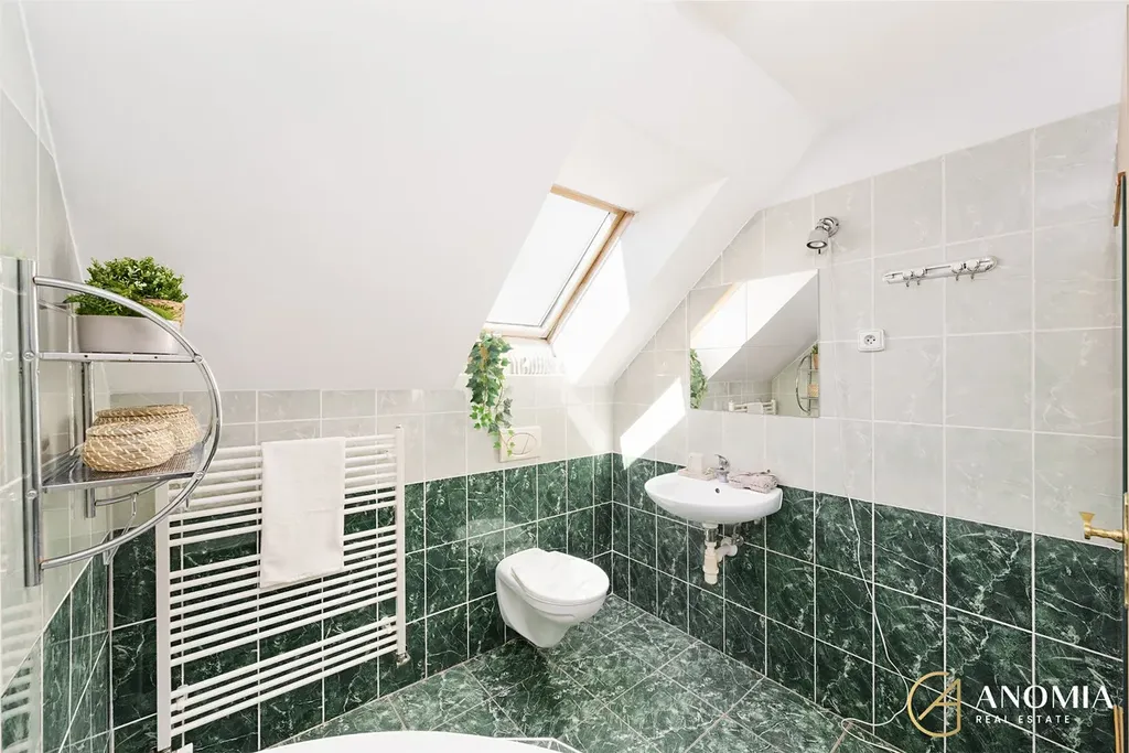V patře se nacházejí dva samostatné pokoje, koupelna s WC a chodba se schodištěm. Pokoje mají výměry 18,11 m² a 17,60 m², takže oba nabízejí komfortní prostor například pro ložnici, dětský pokoj nebo pracovnu.