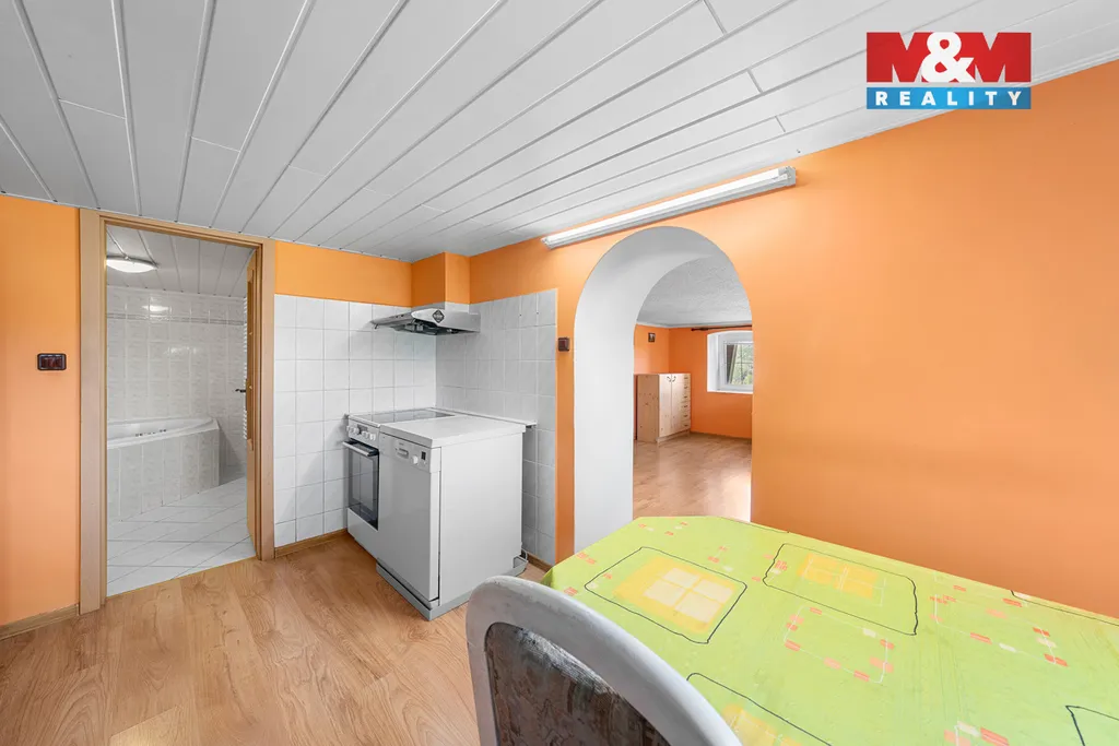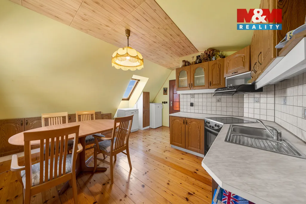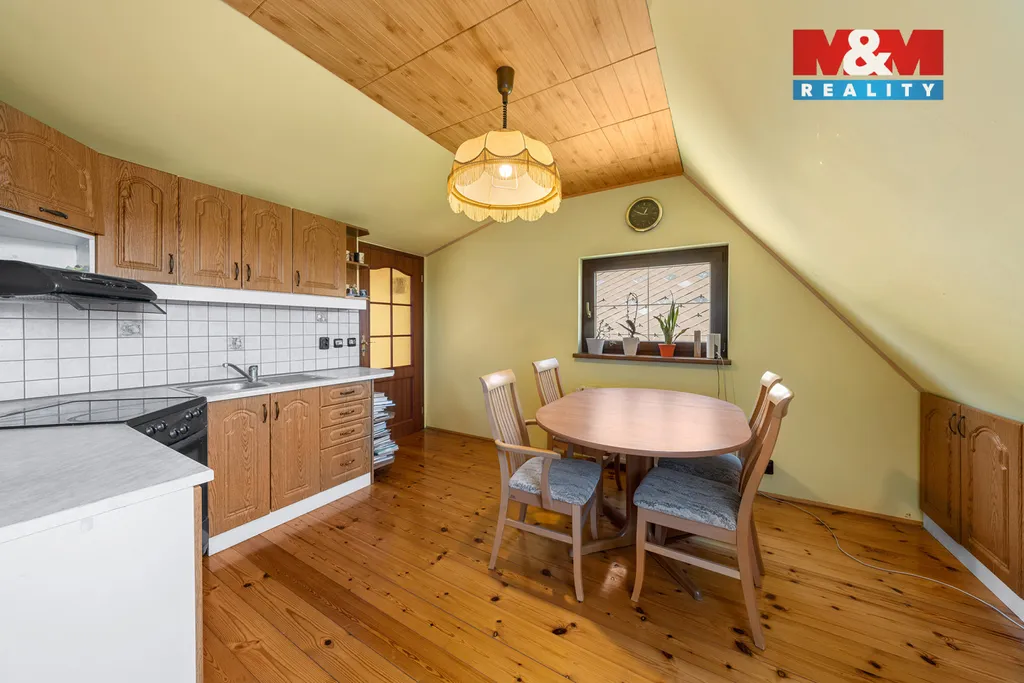 Dům má přízemí se vstupem, první patro a obytné podkroví s vlastním samostatným vstupem. Celkem nabízí sedm místností, dvě koupelny a užitnou plochu 196 m² a je ve velmi dobrém technickém stavu.