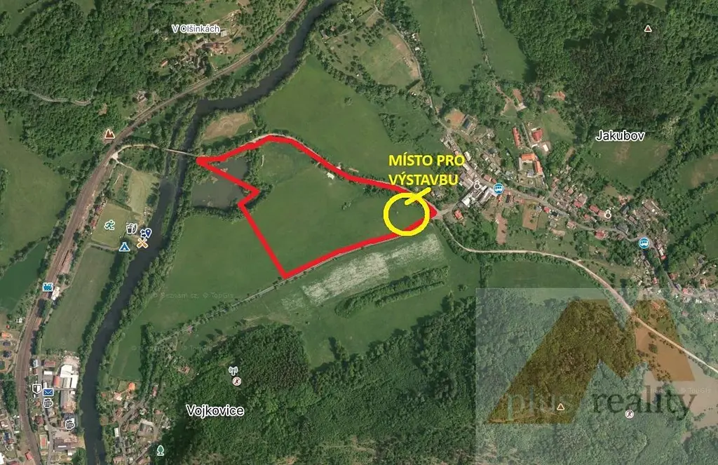 Nádherné místo ve Vojkovicích je nyní k prodeji. K výstavbě je určena část o výměře cca 2.500m2. Na pozemek je přímý vjezd ze státní komunikace. V severní části je umístěn rybník, který bezprostředně navazuje na řeku.