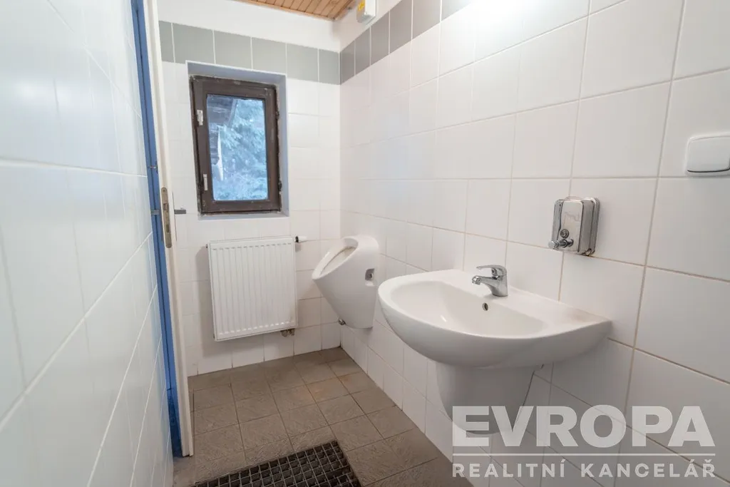 1. NP – společná hala vč. kuchyně, 2x společenská místnost, 2x ložnice, dílna, umývárna muži, umývárna ženy, 4 x WC a sklad.