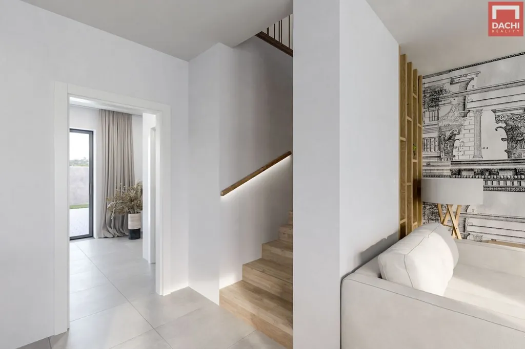Součástí jednotky je vlastní pozemek o výměře 341 m se zahradou, která poskytuje dostatečný prostor pro relaxaci, rodinné aktivity i případné úpravy dle vašich představ. Dispoziční řešení je navrženo s důrazem na praktičnost. V přízemí se nachází otevřený obývací pokoj s kuchyňským koutem a přímým vstupem na terasu a zahradu, dále předsíň, šatna a samostatné WC. V patře je umístěna klidová zóna se třemi samostatnými pokoji, koupelnou a balkonem. Jednotka má vlastní vstup a samozřejmostí jsou parkovací stání přímo u domu.