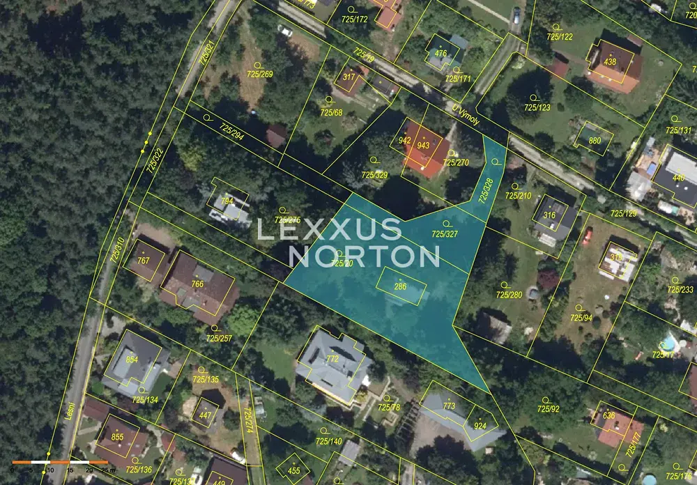 Stavební pozemek s plochou 1.400 m2 s připojením na inženýrské sítě. Na parcele je dnes postavena dřevostavba zahradního domku – ateliéru, obklopeného vzrostlou přírodní zahradou. Zahradní domek s plochou 39m2 nabízí díky chytré vnitřní posuvné stěně variabilní uspořádání interiéru. Ten může sloužit jako jednoprostorový rozměrný open space ateliér s kuchyňským koutem, anebo jako samostatný dům 2+kk s příslušenstvím. Jedná se o nemovitost vysoké estetické kvality a nadčasového řešení, která díky na východ a západ orientovaným proskleným plochám v maximální míře komunikuje s lesní zahradou, do které byla vsazena. Je zde k dispozici architektonická studie na rozšíření objektu až na trojnásobek současné plochy. Pozemek má samostatný přístup z ulice U Výmoly, což platí i pro napojení na inženýrské sítě. Nemovitost umožňuje široké spektrum budoucího využití, ať se již bude jednat o její používání v současném uspořádání a objemu, až po možnou dostavbu a navýšení ploch objektu a její konverzi do podoby plnohodnotného rodinného domu. Zásadní přidanou hodnotou této nemovitosti zůstává zahrada. Ta akcentuje blízký les, vzrostlé stromy jsou zde vhodně doplněné okrasnými křovinami a parkovou zelení, nechybí zde otevřené travnaté plochy, které jsou vystřídány okrasnými zákoutími, to vše stále v poněkud nespoutaném přírodním stylu.